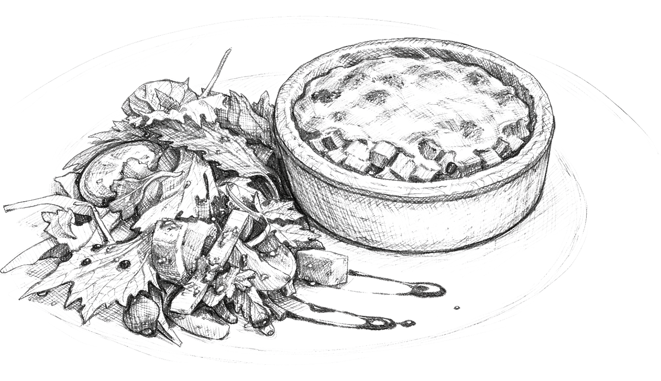 Irish back bacon, butcher's sausages, scrambled eggs, black & white pudding, soda bread, potato bread, baked beans, mushrooms, grilled tomatoes